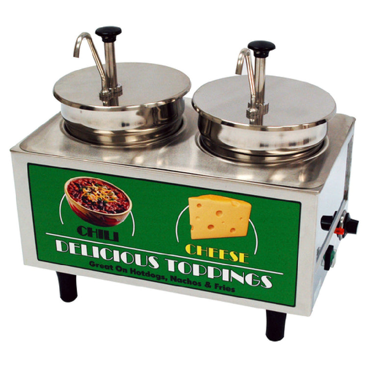 Winco 51074A Benchmark Chili & Cheese Warmer (2) 7 Qt. Wells (2) Stainless Steel Pumps
