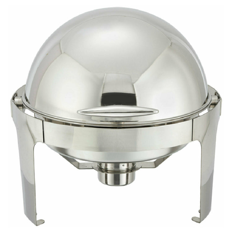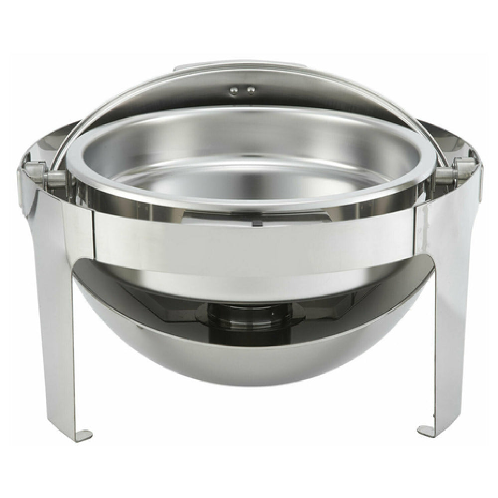 The Winco 602 Madison Chafer 6 Qt. Round is a premium chafing dish crafted with precision to cater to the needs of the hospitality industry. This chafer features a stainless steel frame that ensures durability and a sophisticated mirror finish that enhances presentation aesthetics. Its roll-top lid is designed with a 180-degree full opening and a 90-degree intermediate opening, offering versatile access to the contents while maintaining temperature control. The Winco 602 Madison Chafer includes essential components such as a food pan, water pan, and fuel holder, making it a comprehensive solution for buffet setups. With a 6-quart capacity, this round chafer is perfectly suited for various applications, from large-scale catering to intimate dining settings, providing both functionality and elegance. The stainless steel construction not only offers resilience against corrosion but also facilitates easy maintenance, making it a reliable choice for professionals in the catering sector. This chafer's thoughtful design and practical features make it an ideal piece for anyone looking to enhance their food service operations with a touch of class and efficiency. Its versatility and quality construction highlight its value across different market segments within the industry, ensuring a harmonious blend of durability, style, and practicality.