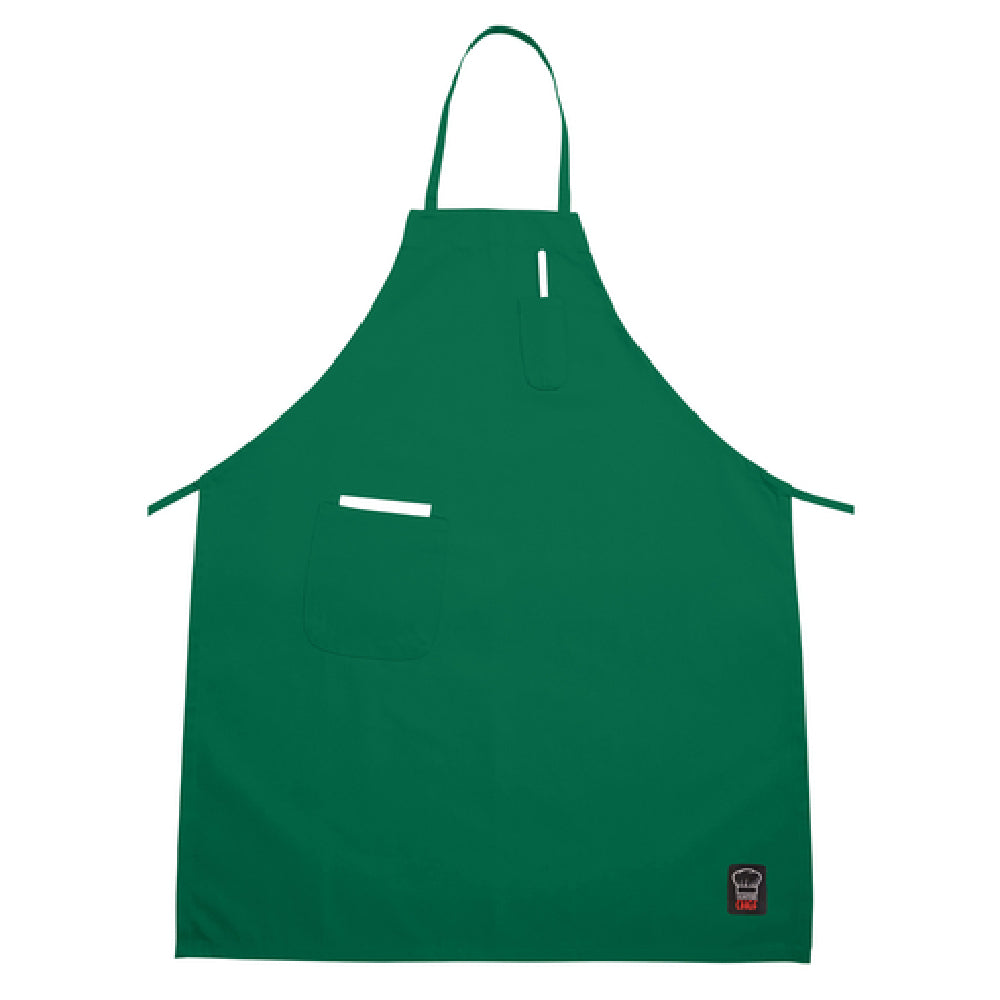 The Winco BA-PLG Bib Apron 33" x 26" Full-length is a versatile and durable apparel accessory designed for both amateur and professional chefs. This apron, measuring 33 inches in length and 26 inches in width, provides ample coverage and protection in kitchen environments. Constructed from a 65-35 poly-cotton blend, it combines the breathability and comfort of cotton with the durability and wrinkle-resistance of polyester, making it suitable for long hours of wear. The apron features two convenient pockets, offering practical storage solutions for utensils, recipes, or other essentials, enhancing functionality and efficiency in busy culinary settings. Its light green color adds a touch of freshness and style, distinguishing it from standard white or black aprons. This Winco apron is machine washable and dryable, ensuring easy maintenance and longevity, which is crucial for regular use in bustling kitchens. The Signature Chef branding suggests an alignment with professional quality, catering to different market segments such as restaurants, catering services, and home cooking enthusiasts seeking reliability and style. The Winco BA-PLG Bib Apron stands out for its blend of comfort, practicality, and professional appeal, making it a valuable asset in any kitchen environment.