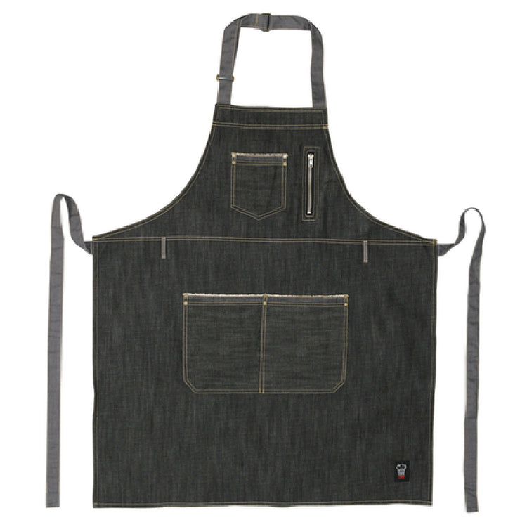 Winco BADN-3430 Village Bib Apron 34-1/2”L X 30-1/4”W With (3) Pockets And (1) Zipper Pouch
