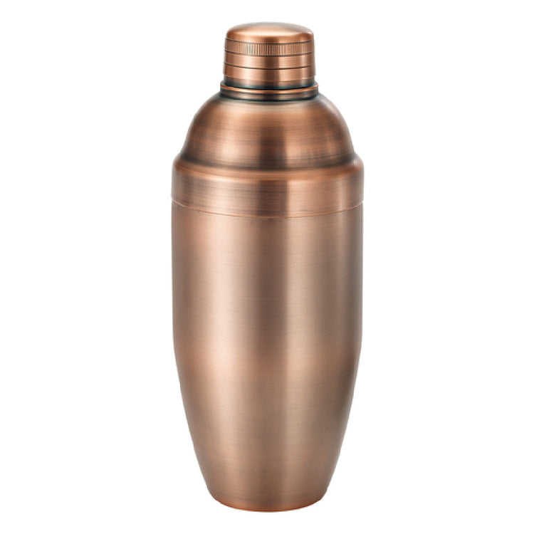 The Winco BASS-24AC After 5 Shaker Set 24 Oz is a premium 3-piece cocktail shaker set crafted for both professional bartenders and home enthusiasts. This set boasts a generous 24 oz capacity, perfectly suited for crafting a variety of cocktail servings. Constructed from high-quality 18/8 stainless steel, it ensures durability and resistance to rust and corrosion, making it a reliable choice for long-term use in any bar setting. The Antique Copper Finish not only adds a touch of elegance and sophistication to the set but also makes it a standout piece in any barware collection. Ideal for use in upscale bars, restaurants, or home bars, its design complements both modern and traditional decor styles. The Winco BASS-24AC After 5 Shaker Set is engineered for seamless cocktail mixing, providing excellent insulation to keep drinks chilled. This versatile shaker set is designed to meet the needs of bartending professionals and cocktail enthusiasts alike, combining functionality with aesthetics. Its robust construction and classic design make it an essential tool for creating expertly mixed beverages, enhancing the cocktail experience across various market segments within the hospitality industry.