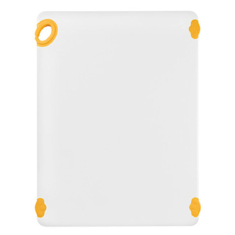 The Winco CBN-1824YL STATIKBoard™ Cutting Board is an essential culinary tool designed for both professional kitchens and home use. Measuring 18 inches by 24 inches and with a thickness of 1/2 inch, this rectangular cutting board provides a generous surface area for various food preparation tasks. Its unique design incorporates a rubber grip hook, ensuring stability and preventing slippage during use. Constructed from a durable co-polymer material, this cutting board is both dishwasher safe and BPA free, highlighting its commitment to safety and convenience. The board's vibrant yellow color not only adds a pop of brightness to any kitchen but also aids in color-coding to prevent cross-contamination, making it particularly valuable in environments adhering to strict food safety standards. Additionally, the Winco CBN-1824YL is NSF certified, assuring users of its compliance with rigorous public health and safety requirements. This cutting board's combination of robust construction, safety features, and thoughtful design make it a reliable choice for a wide range of culinary professionals, from chefs in bustling restaurants to catering businesses requiring durable and hygienic food preparation surfaces.
