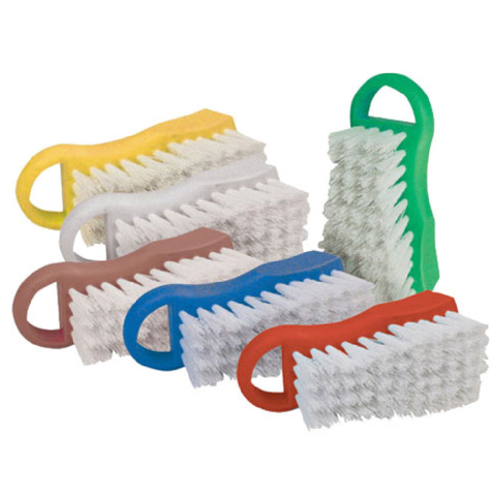 The Winco CBR-YL Cutting Board Brush, with its 6-1/2" length, is a specialized cleaning tool crafted from durable polypropylene, distinguished by its vibrant yellow color. This cutting board brush is designed to meet the rigorous demands of various culinary environments, offering a reliable solution for maintaining hygiene standards. Its compact size ensures easy handling and maneuverability, making it an ideal choice for kitchens of all sizes, including those in restaurants, catering services, and home-based culinary ventures. The polypropylene construction of the Winco CBR-YL brush ensures longevity and resistance to harsh cleaning agents, providing a practical edge for frequent use. Its yellow hue not only provides high visibility, reducing the risk of cross-contamination by color-coding cleaning tasks, but also aligns with industry standards for sanitation practices. This brush serves as an essential tool for professionals committed to upholding cleanliness and food safety, offering a dependable and efficient means to clean and maintain cutting boards, thereby preserving the quality and safety of food preparation surfaces. The Winco CBR-YL Cutting Board Brush embodies practicality and efficiency, establishing itself as a valuable asset in maintaining the hygiene of culinary workspaces.