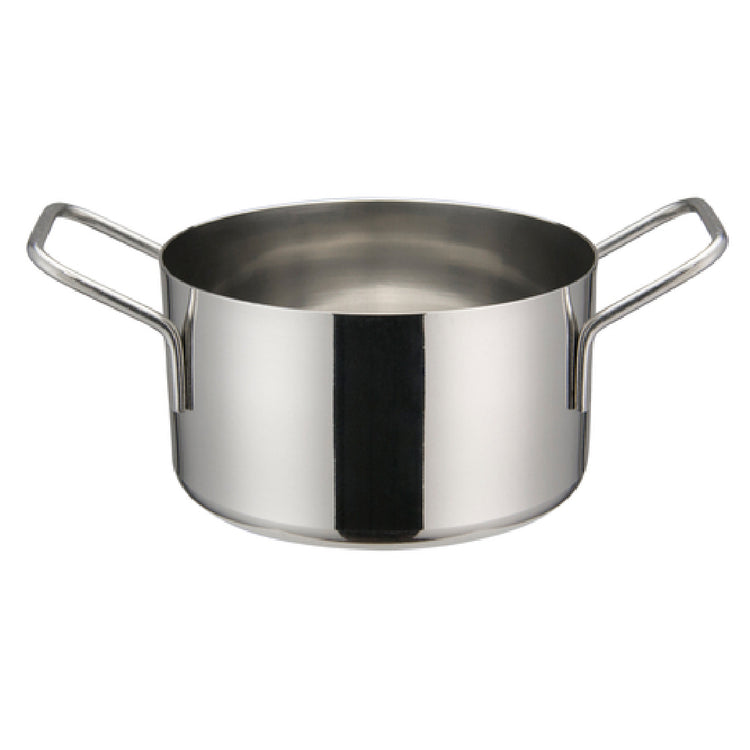 The Winco DCWE-104S Mini Casserole is a compact and efficient kitchen tool, featuring a 17 oz. capacity suitable for individual servings. Measuring 4-1/4 inches in diameter and 2-3/8 inches in height, this round casserole dish is crafted from high-quality stainless steel, ensuring durability and easy maintenance. Its sleek design makes it a versatile addition to any culinary setting, from professional kitchens to home cooking. The Winco DCWE-104S is particularly beneficial for chefs and restaurateurs looking to provide personalized dining experiences, as its size is perfect for serving small portions or side dishes with a touch of elegance. For caterers and event planners, the mini casserole offers a practical solution for plating and serving multiple dishes in a cohesive presentation. Its stainless steel construction not only enhances its aesthetic appeal but also guarantees resilience against everyday wear and tear, making it a reliable choice for frequent use. This mini casserole dish is an excellent option for those in the foodservice industry who require both functionality and style in their serveware.