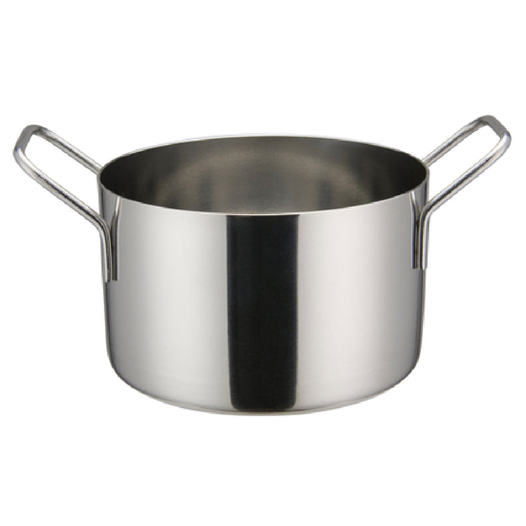 The Winco DCWE-105S Mini Casserole stands out with its efficient and compact design, boasting a capacity of 28 oz. and a diameter of 4-3/4 inches with a height of 3 inches. This round casserole is crafted from stainless steel, ensuring durability and a sleek appearance, making it a versatile addition to any culinary setting. Its size and construction make it ideal for individual servings in restaurants or catering events, allowing chefs to present dishes with an elegant flair. The stainless steel material not only provides a long-lasting finish but also facilitates easy cleaning, which is essential in maintaining high hygiene standards in professional kitchens. This product is particularly valuable for establishments looking to serve small portions in an appealing and efficient manner, making it perfect for tapas, side dishes, or desserts. Additionally, the Winco DCWE-105S Mini Casserole is tailored for markets that emphasize durability and presentation, such as upscale dining venues and hospitality services. Its compact size and robust build cater to the needs of chefs seeking reliable and stylish serving solutions without compromising on quality or function. With its thoughtful design and practical specifications, this mini casserole enhances any culinary presentation.
