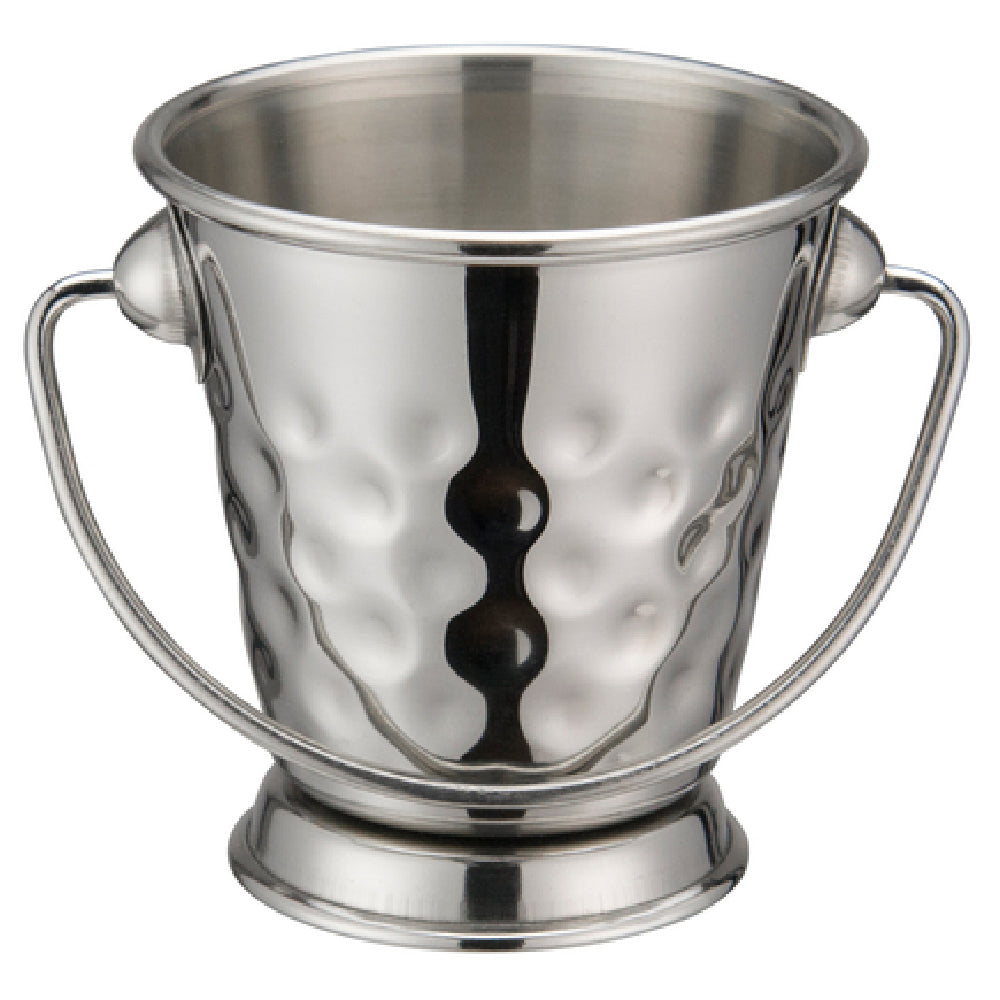 Winco DDSA-101S Mini Pail 5 Oz. 3" Dia. X 3-1/8"H is a compact and innovative solution for a variety of culinary and presentation needs. Crafted from hammered stainless steel, this mini pail boasts a contemporary round design, incorporating both durability and aesthetic appeal. The dimensions, standing at 3 inches in diameter and 3-1/8 inches in height, make it a versatile option for serving or displaying small portions in style. This mini pail includes a handle, enhancing its usability for easy transport and presentation. With a capacity of 5 ounces, it is ideally suited for serving sauces, sides, or even small appetizers, making it a popular choice for catering services, restaurants, and event planners seeking to elevate their table setting. The hammered finish not only adds a touch of elegance but also ensures enhanced grip and reduced visibility of fingerprints, maintaining its pristine appearance throughout use. The stainless steel construction of the Winco DDSA-101S ensures long-lasting wear, resistance to rust and corrosion, and easy maintenance, aligning with the rigorous demands of commercial food service environments. This mini pail effectively combines functionality with a modern aesthetic, providing an excellent choice for professionals looking to enhance presentation while maintaining operational efficiency.