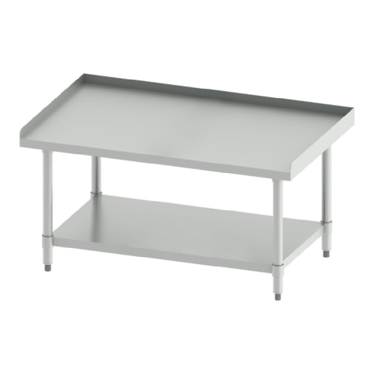 The Winco ES-4830 Equipment Stand is a robust and versatile solution designed to meet the needs of various segments within the foodservice industry. With dimensions of 48 inches in width, 30 inches in depth, and 24 inches in height, this equipment stand provides ample space for supporting kitchen equipment. Constructed from premium stainless steel, the stand promises durability and resistance to corrosion, making it ideal for high-demand kitchen environments. The galvanized legs and undershelf offer added strength and stability, ensuring that the stand can support substantial weight. The inclusion of a 1.5-inch op-turn on the sides and rear enhances safety by preventing equipment from sliding off the edges. This equipment stand is NSF certified, signifying its compliance with rigorous public health and safety standards, a critical feature for commercial kitchens. The Winco ES-4830 Equipment Stand is a strategic choice for establishing efficient and organized kitchen layouts, providing dependable support for heavy-duty appliances. Whether used in restaurants, catering services, or institutional kitchens, its sturdy construction and practical design make it a valuable component in maintaining an effective workflow. This stand's combination of stainless steel construction and thoughtful design ensures both longevity and performance in demanding kitchen settings.