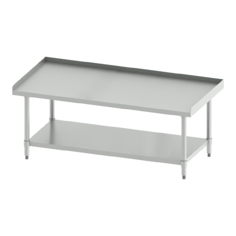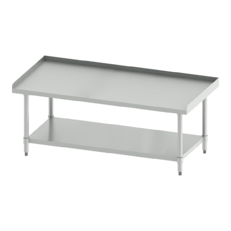 The Winco ES-6030 Equipment Stand 60"W x 30"D x 24"H Stainless Steel is a durable and versatile solution designed to support various equipment needs in professional kitchens and other industrial settings. This equipment stand is crafted from high-quality stainless steel, providing excellent durability and resistance to corrosion, ensuring longevity and reliability in demanding environments. The stand features galvanized legs and an undershelf, enhancing stability and offering additional storage space for kitchen essentials or heavy equipment. With dimensions of 60 inches in width, 30 inches in depth, and 24 inches in height, it is suitable for accommodating a wide range of equipment sizes. The 1.5-inch high op-turn on the sides and rear adds extra safety by preventing equipment or items from sliding off the stand. Additionally, the Winco ES-6030 is NSF certified, affirming its compliance with public health and safety standards, which is crucial for any professional kitchen or food service operation. This equipment stand combines robust construction with practical features, making it an essential asset in various industry segments, including restaurants, catering services, and food production facilities, where reliability and hygienic practices are paramount.
