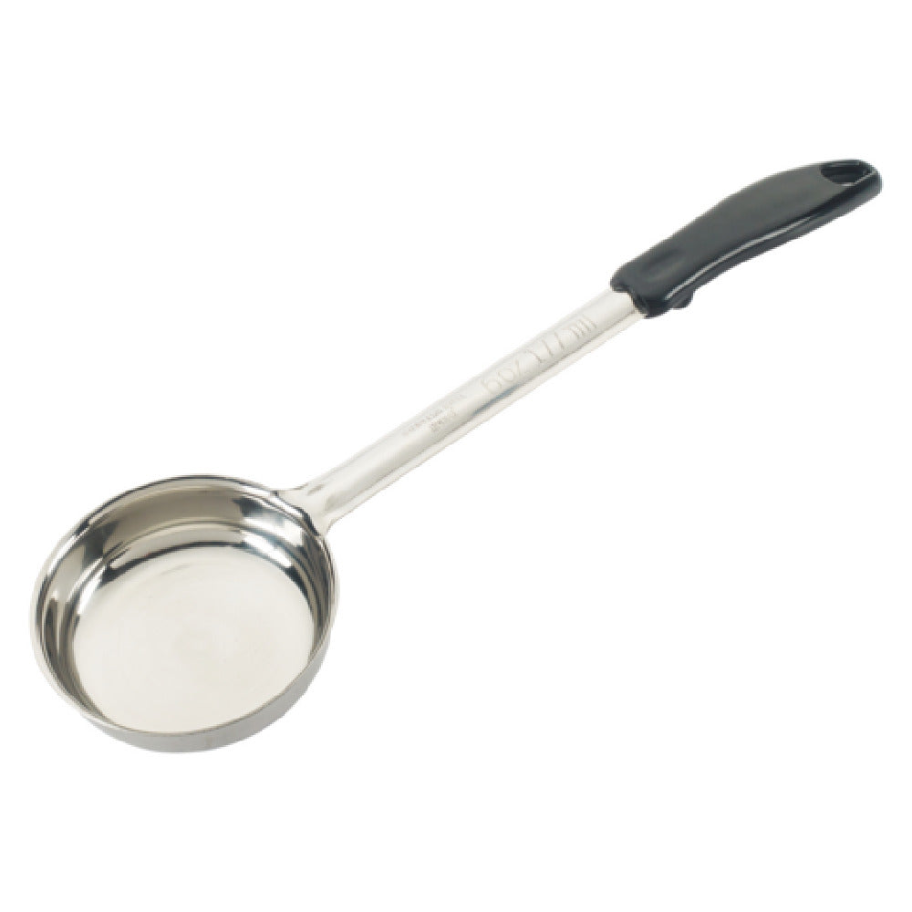 The Winco FPS-6 Food Portioner 6 Oz. One-piece is a specialized kitchen tool designed for precision and efficiency in portion control across various food service settings. This portioner features a 6-ounce capacity, ideal for serving consistent food portions, crucial in maintaining cost control and dietary standards. Its one-piece construction ensures durability and longevity, minimizing the risk of breakage or loss of components over time. Made from solid stainless steel, the Winco FPS-6 Portioner not only offers resistance to corrosion and rust but also ensures easy cleaning and maintenance, making it suitable for high-volume commercial kitchens. The black handle provides a comfortable grip, reducing hand fatigue during extended use. This portioner is particularly valuable in institutional settings such as hospitals, cafeterias, and catering services, where precise portion control is essential for operational efficiency and customer satisfaction. By standardizing portion sizes, the Winco FPS-6 aids in inventory management and helps maintain consistent product quality, thus providing a reliable solution for food service professionals. Its robust build and functional design make it an indispensable tool in any professional kitchen aiming for excellence in food presentation and cost management.