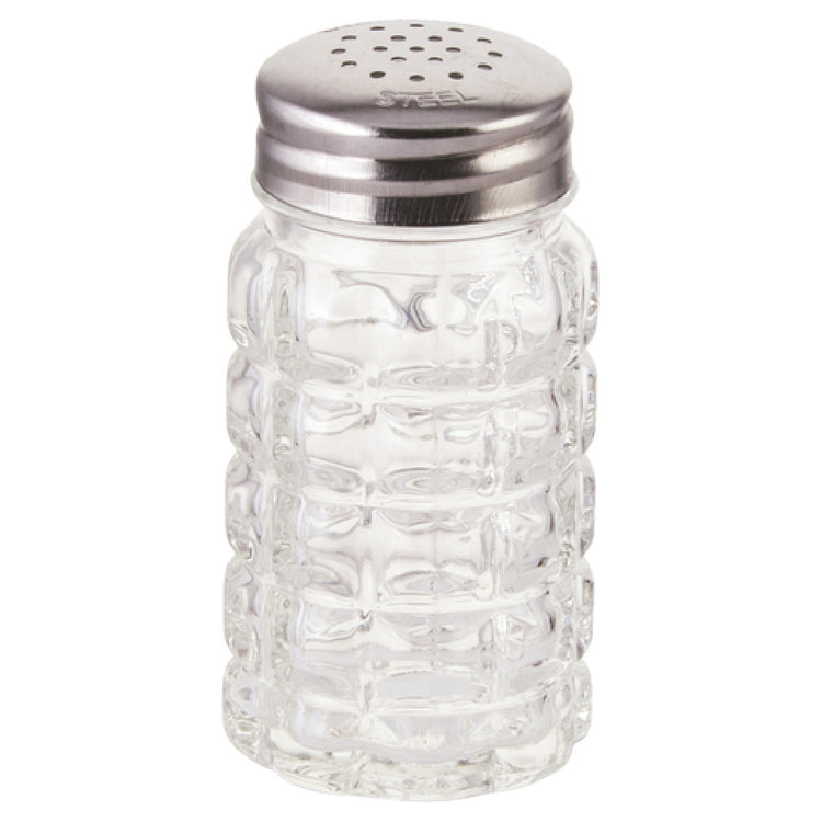 The Winco G-118 Glass Shaker 2 Oz. Classic is a meticulously crafted condiment dispenser designed for a variety of dining and culinary settings. This shaker features a 2-ounce capacity, making it an ideal choice for precise seasoning and condiment dispensing needs. Its classic design is complemented by a robust and durable glass construction, ensuring longevity and ease of use. The shaker is topped with a stainless steel flat top, which not only enhances the aesthetic appeal but also provides a functional aspect for easy pouring and refilling. The glass body allows for clear visibility of the contents, making it easier to identify the contents at a glance and monitor when refills are necessary. Suitable for both commercial and home use, the Winco G-118 Glass Shaker is versatile and can seamlessly fit into various settings including restaurants, cafes, catering events, and household kitchens. Its compact size and traditional design make it an excellent addition to any table setting, allowing for easy handling and storage. The combination of glass and stainless steel materials highlights the shaker's focus on quality and durability, ensuring it serves as a reliable tool for enhancing the dining experience across multiple market segments.
