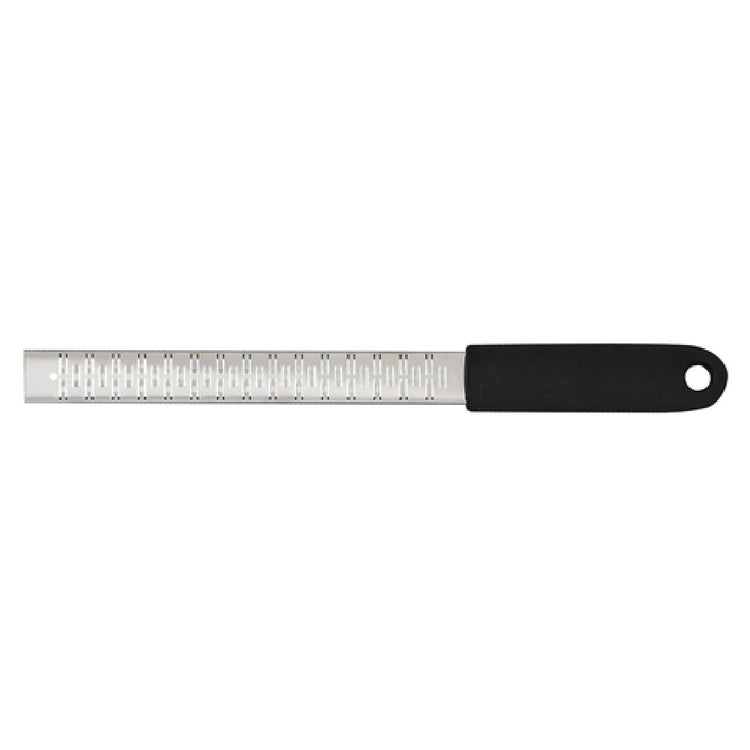 The Winco GT-106 Grater is designed with a ribbon blade and measures 13-1/5 inches, making it an essential tool for various food preparation tasks. This robust kitchen accessory features a black soft grip handle, ensuring user comfort and reducing strain during extended use. Equipped with an etched 18/8 stainless steel blade, the GT-106 is known for its durability and precision, allowing for consistent grating results. It comes with a protective cover, enhancing safety and prolonging the blade’s lifespan when not in use. Furthermore, the grater is dishwasher safe, simplifying the cleaning process and maintaining hygiene standards. This grater is an ideal choice for both domestic kitchens and professional culinary environments where efficiency and reliability are paramount. Its design caters to different market segments within the food industry, providing a versatile tool for chefs and home cooks alike who prioritize quality and ease of use in their kitchen equipment.
