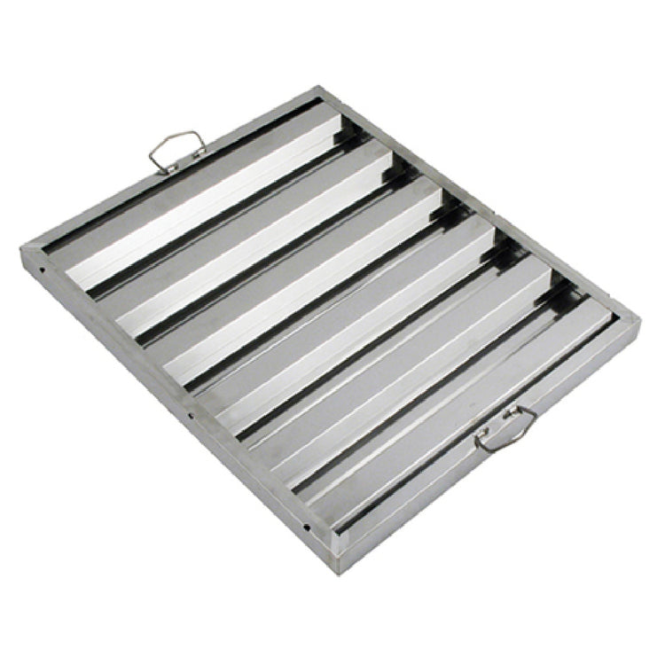 The Winco HFS-2520 Hood Filter - 25"W x 20"H - 1-1/2" thick is a stainless steel filtration solution engineered for commercial kitchen ventilation systems. Its dimensions, 25 inches in width and 20 inches in height, along with a thickness of 1-1/2 inches, make it a suitable choice for a range of hood systems. Constructed from durable stainless steel, this hood filter not only ensures longevity but also maintains hygiene due to its resistance to corrosion and ease of cleaning. The robust design is tailored to enhance air quality by efficiently trapping grease and other particulates, which is critical for maintaining safe and sanitary kitchen environments. Different segments within the food service industry, from bustling restaurants to institutional cafeterias, find value in its reliable performance and straightforward installation. Its standardized size allows it to serve as a replacement filter in various kitchen setups, offering versatility and convenience. The Winco HFS-2520 Hood Filter is an essential component for any food service operation prioritizing safety, efficiency, and cleanliness in their kitchen airflow management systems.