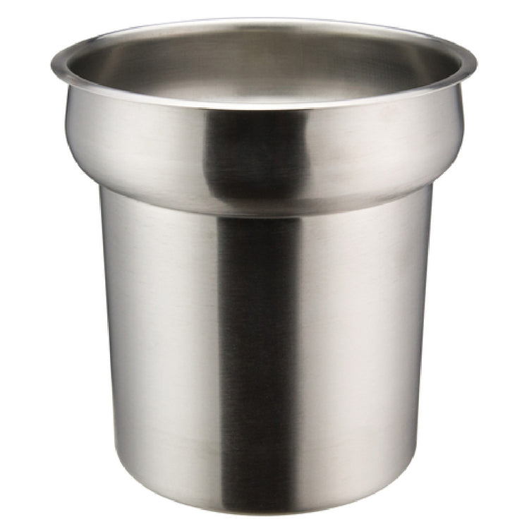 The Winco INS-4.0 Inset 4 Qt. 7-1/2" x 7-1/2" is a precision-engineered culinary tool, highly regarded for its robust construction and versatile application in various food service environments. Crafted from heavy-weight stainless steel, this round inset boasts a mirror finish, emphasizing both its durability and aesthetic appeal. With a capacity of 4 quarts, it is perfectly suited for holding and serving a variety of dishes, making it indispensable in both commercial kitchens and catering services. The 7-1/2" x 7-1/2" dimensions ensure it fits seamlessly into standard-sized chafing dishes and steam tables, facilitating easy integration into existing kitchen setups. The heavy-weight construction not only enhances its longevity but also provides superior heat retention, crucial for maintaining optimal food temperatures during service. This inset is an ideal choice for professional chefs and restaurateurs seeking reliable kitchenware that combines functionality with a polished presentation. Its stainless steel composition offers excellent resistance to rust and corrosion, ensuring it withstands the rigors of daily use while maintaining its pristine appearance. The Winco INS-4.0 Inset is a valuable asset across various segments of the food industry, from high-volume catering operations to small-scale eateries, delivering consistent performance and unmatched quality.