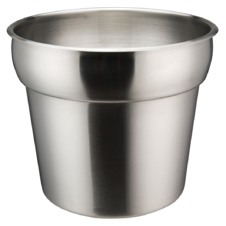 The Winco INSN-7 Inset 7 Qt. (224 Oz.) 9-1/2" X 8" is a versatile round stainless steel container designed to meet the rigorous demands of the food service industry. With its substantial capacity of 7 quarts, equivalent to 224 ounces, this product ensures ample volume for a variety of ingredients, making it ideal for both large-scale and small-scale culinary operations. Measuring 9-1/2 inches in diameter and 8 inches in height, the inset is crafted from premium stainless steel, offering exceptional durability and resistance to corrosion in high-use environments. The satin finish not only provides an attractive appearance but also enhances the ease of cleaning, maintaining hygiene standards crucial for food safety. As part of the Prime® line, this inset embodies superior manufacturing quality, ensuring longevity and reliable performance in any professional kitchen setting. Additionally, its NSF certification underscores its compliance with strict public health and safety guidelines, providing peace of mind to food service professionals. The Winco INSN-7 Inset is an indispensable tool for chefs and kitchen operators seeking a dependable solution for storing and serving soups, sauces, and other culinary creations. Its robust construction and efficient design make it a valuable asset across various market segments within the industry.