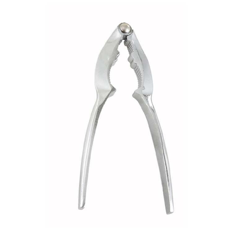 The Winco LC-03 Lobster Cracker 6" Long Large is a specialized tool designed to enhance the dining experience for seafood enthusiasts and professional chefs alike. Measuring six inches in length, this lobster cracker is crafted to handle a variety of shellfish with ease. Its size is particularly suitable for larger lobsters, allowing for efficient cracking without unnecessary effort. The double jaw design offers increased leverage and precision, making it easier to access the delicious meat within the shell. Chrome-plated for enhanced durability and an appealing finish, this lobster cracker is both functional and aesthetically pleasing, ensuring it complements any table setting or kitchen environment. The chrome plating also provides a level of corrosion resistance, which is essential for tools frequently exposed to moisture and seafood juices. This product is ideal for restaurants seeking reliable kitchen tools, catering services that require durable equipment for high-volume events, and home cooks who enjoy preparing and serving seafood dishes. The Winco LC-03 Lobster Cracker's blend of size, material, and design makes it a must-have for any establishment or individual that values both efficiency and style in their culinary toolkit.