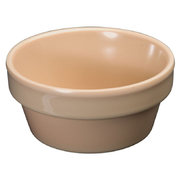 The Winco MMSC-4 Sauce Cup/Ramekin is a versatile 4 oz. serving solution, measuring 3-1/4 inches in diameter, perfect for a range of culinary applications from restaurants to catering events. This round ramekin is crafted from durable melamine, ensuring long-lasting use and resistance to breakage, making it a practical choice for busy kitchens. Its heat resistance up to 212°F/100°C allows for safe serving of hot sauces and side dishes without compromising the integrity of the material. The Winco MMSC-4 is dishwasher safe, providing ease of cleaning and maintenance, a crucial feature for high-demand environments. Finished in a subtle tan color, it offers a neutral aesthetic that complements any table setting or presentation. The product is NSF certified, highlighting its adherence to strict standards for public health protection and food safety, making it an ideal option for commercial food service operations prioritizing hygiene and quality. The Winco MMSC-4 Sauce Cup/Ramekin embodies a functional and reliable addition to any professional kitchen's serving ware, balancing practicality and style.