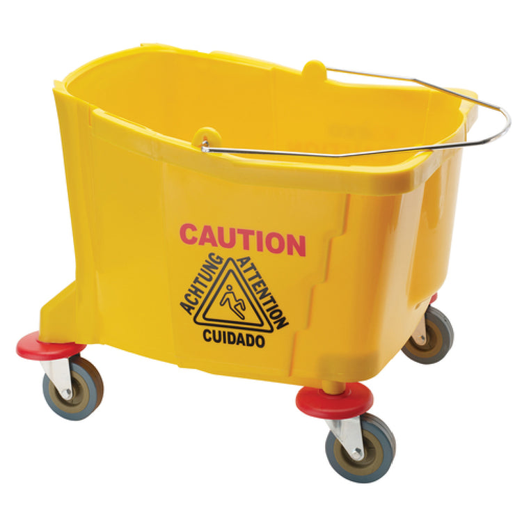 The Winco MPB-36B Replacement Bucket Only - 36 Qt. - Yellow is a specialized component designed for seamless integration with the MPB-36 mop bucket system. With a substantial capacity of 36 quarts, this vibrant yellow replacement bucket is engineered to provide ample space for liquid containment and cleaning solutions, optimizing the performance of your cleaning operations. Its striking yellow hue not only enhances visibility for safety compliance but also ensures ease of identification in bustling environments. The Winco MPB-36B is exclusively crafted to fit the MPB-36 system, making it an indispensable asset for cleaning professionals seeking reliable and efficient replacement parts. Its durable construction ensures long-lasting performance, maintaining structural integrity over prolonged use in high-demand settings. This replacement bucket is an essential accessory for janitorial services, hospitality venues, and commercial establishments, providing a crucial utility in maintaining cleanliness and hygiene standards. The Winco MPB-36B Replacement Bucket embodies practicality and efficiency, catering to diverse market segments requiring robust cleaning solutions without compromising on quality or reliability.