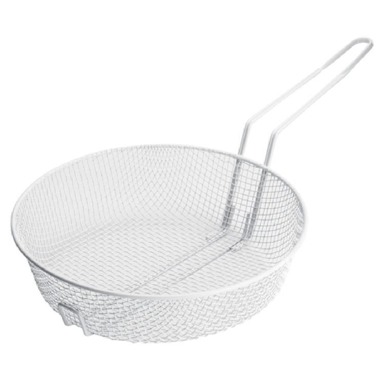 The Winco MSBW-12M Breading Basket is a versatile tool designed for professional kitchens, with a 12-inch diameter and a 3-inch height, offering ample space for a variety of breading tasks. Its medium mesh construction ensures optimal coating distribution, making it suitable for evenly applying batter or breadcrumbs to a wide range of foods. This breading basket features a non-stick white plastic coating, which enhances its durability while ensuring ease of cleaning and maintenance. The steel wire design provides robust support and structural integrity, making it a reliable choice for both high-volume commercial kitchens and smaller food service operations. The unique combination of medium mesh and non-stick coating distinguishes the Winco MSBW-12M as an efficient solution for chefs and culinary professionals seeking consistent results in breading applications. Its practicality extends across various segments of the industry, from busy restaurants and catering services to specialty food producers and home-based culinary artisans. By streamlining the breading process and minimizing food waste, this basket supports operational efficiency and helps maintain high standards of food presentation. The Winco MSBW-12M Breading Basket is an indispensable tool for achieving precision and excellence in culinary preparation.