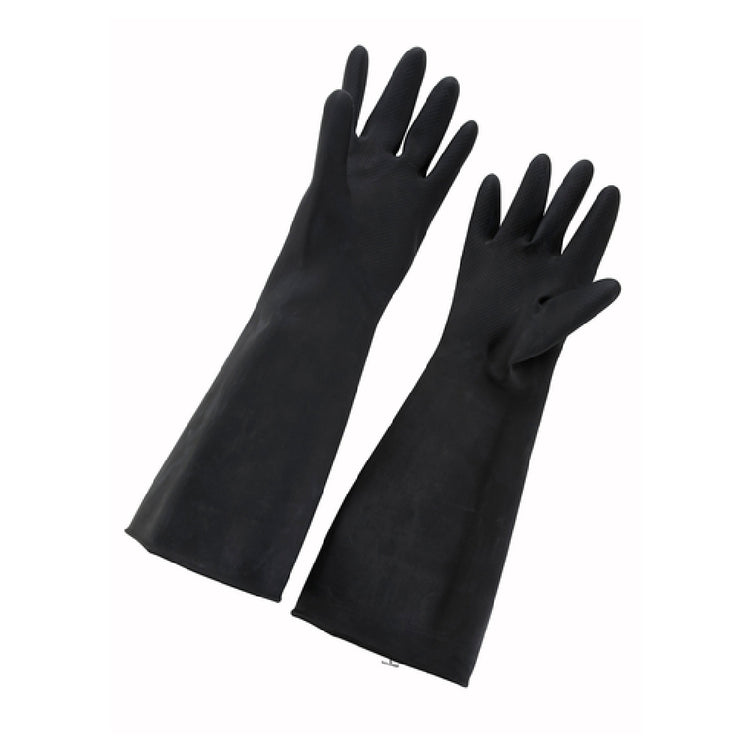 The Winco NLG-1018 Gloves Large Natural Latex are designed for professionals seeking reliable protection and performance in various industrial and commercial environments. These gloves are crafted from natural latex, known for its elasticity and durability, providing a comfortable fit and excellent tactile sensitivity. The large size ensures a snug fit for those with bigger hands, enhancing dexterity and reducing hand fatigue during prolonged use. The black color of the gloves offers a sleek appearance while helping to hide stains and dirt, making them suitable for settings where cleanliness and appearance are critical. These gloves are ideal for a range of markets including food service, janitorial work, and laboratory tasks, where protection against contaminants is essential. The natural latex material also offers resistance to punctures and abrasions, ensuring longevity and reliability. The Winco NLG-1018 Gloves are an essential tool for maintaining hygiene and safety standards across industries, combining comfort, protection, and durability.