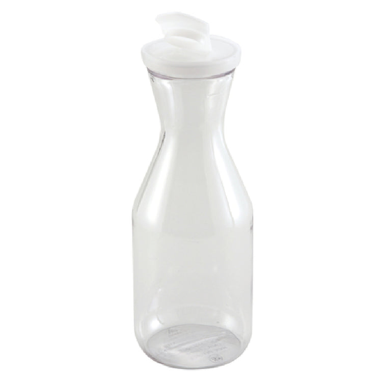 The Winco PDT-05 Decanter - 0.5 qt. - with flip-top lid is a versatile polycarbonate container widely appreciated in various industry segments for its practicality and durability. With a capacity of 0.5 quarts, this decanter is perfect for both small-scale and larger operations, striking an ideal balance between size and convenience. The inclusion of a flip-top lid enhances its usability, allowing for easy access and secure closure, which is essential in fast-paced environments where efficiency is paramount. Made from resilient polycarbonate material, the decanter is designed to withstand the rigors of daily use, offering long-lasting performance. The Winco PDT-05 is NSF certified, ensuring that it meets the strict standards of safety and quality required in food service industries. This makes it an excellent choice for restaurants, cafes, catering services, and other food-related establishments that prioritize hygiene and dependability. The Winco PDT-05 Decanter - 0.5 qt. - with flip-top lid is a reliable and practical solution for a variety of applications, providing industry professionals with a durable and efficient tool that can adapt to the diverse needs of their operations.