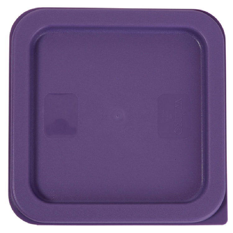 The Winco PECC-24P Container Cover is a meticulously crafted accessory designed to fit 2 and 4 quart square storage containers, with dimensions measuring 7-3/8 inches by 7-3/8 inches by 1/2 inch in height. Constructed from durable polyethylene, this cover is both allergen-free and robust, ensuring a secure seal that helps maintain the freshness and integrity of contents stored within compatible containers. Its purple hue not only adds a visual distinction but also aids in easy identification within a busy kitchen environment. This product is particularly beneficial for food service establishments requiring reliable and hygienic storage solutions that conform to industry standards. The compatibility with varying container sizes underscores its versatility, making it a valuable asset in diverse segments such as catering, restaurant kitchens, and food storage facilities. The allergen-free nature of the material caters specifically to environments with strict allergen management protocols, enhancing food safety and customer confidence. The Winco PECC-24P Container Cover thus represents a practical, efficient, and professional choice for those seeking reliable storage solutions that align with contemporary food safety requirements and operational efficiency within the culinary industry.