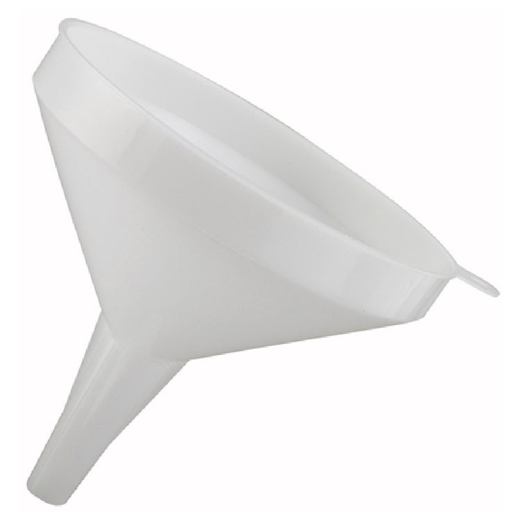 The Winco PF-32 Funnel 32 oz. 6-1/4" dia. is a meticulously designed tool for various industrial sectors, including food service and chemical processing, where precision and hygiene are paramount. With a generous capacity of 32 ounces, this round funnel facilitates the seamless transfer of liquids or fine-grained substances, reducing the risk of spillage and contamination. Its 6-1/4 inch diameter is ideal for ensuring swift and efficient flow, catering to the needs of high-volume operations. Crafted from durable plastic and finished in a pristine white hue, this funnel not only ensures longevity but also meets the rigorous standards of the NSF certification, underscoring its suitability for safe use in commercial settings. Its robust construction and ergonomic design make it an invaluable asset for professionals seeking reliability and efficiency in their daily tasks. The white plastic material is easy to clean, maintaining hygienic standards required in environments such as restaurants, laboratories, and production facilities. This funnel exemplifies both functionality and compliance, making it a versatile choice for professionals across different market segments seeking to streamline their operations with dependable equipment.