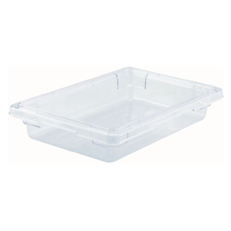 The Winco PFSF-3 Food Storage Box is a substantial 5-gallon (18.9 kg) capacity container, meticulously crafted to meet the diverse needs of the food service industry. With dimensions of 18 inches by 26 inches by 3-1/2 inches, this spacious storage solution is designed for efficient organization and storage of bulk ingredients or prepared foods. The container is constructed from break-resistant polycarbonate, ensuring durability and longevity in demanding environments. Its clear design allows for quick identification of contents, an essential feature for busy commercial kitchens. With a remarkable temperature range capacity from -40°F to 212°F, the Winco PFSF-3 is versatile and can safely store both hot and cold items. Furthermore, its dishwasher-safe attribute facilitates easy cleaning and maintenance, ensuring that high hygiene standards are effortlessly met. The NSF certification attests to its quality and safety, making it a reliable choice for restaurants, catering services, and food processing facilities. Whether used for cold storage, dry goods, or even as a preparation container, the Winco PFSF-3 Food Storage Box stands out as a valuable asset for various segments within the food industry, providing unmatched utility and peace of mind.