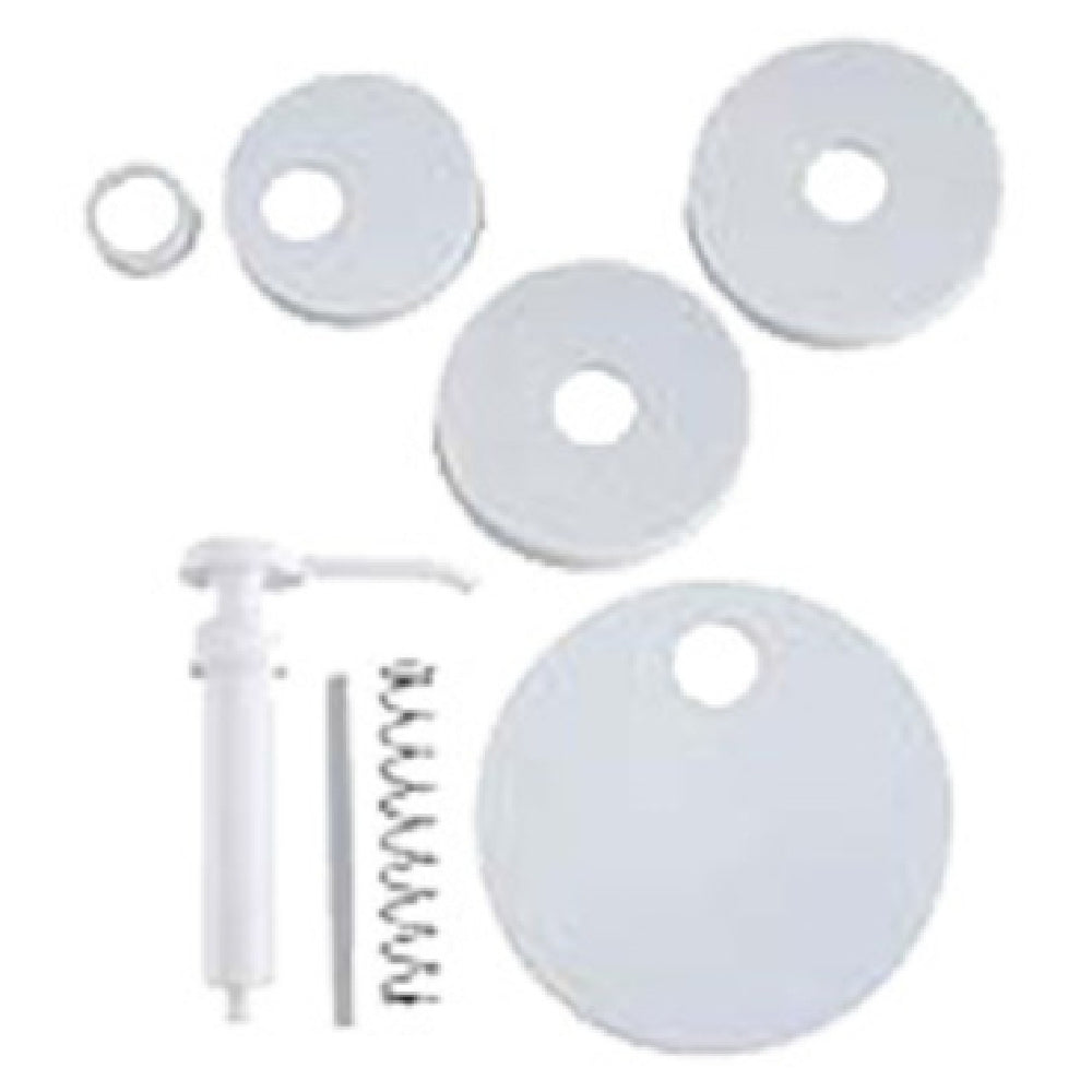 The Winco PKT-6 Pump Kit is a versatile solution designed to meet the varied needs of food service establishments, offering a combination of practicality and adaptability. This set includes one 9-inch standard pump, making it a reliable choice for dispensing liquids or sauces with precision. Accompanying the pump are five uniquely designed lids, each serving specific applications: a 1-9/16 inch threaded lid, a 3-11/16 inch threaded lid, a 4-1/2 inch threaded lid, a 4-1/2 inch snap-on lid, and a 6-5/16 inch snap-on lid. Crafted in a durable plastic material and presented in a classic white color, this pump kit is engineered for efficiency while maintaining a sleek, professional appearance. The different lid sizes and styles offer compatibility with various container types, making this pump kit an asset across multiple segments of the food service industry, from fast-casual dining to catering services. Its robust construction ensures long-lasting performance, meeting the demands of high-volume environments. The Winco PKT-6 Pump Kit stands out for its comprehensive design, providing a one-stop solution for diverse dispensing needs, underscoring its utility and adaptability in professional kitchens.