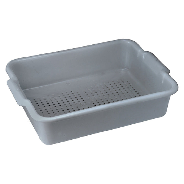 The Winco PLP-5G Bus Box 21-1/4"L x 15-3/8"W x 4-7/8"H Perforated is a durable storage and transport solution crafted from BPA-free polypropylene, ensuring safety and resilience. With its precise dimensions of 21-1/4 inches in length, 15-3/8 inches in width, and 4-7/8 inches in height, this bus box accommodates a variety of needs in food service environments. The perforated design enhances its functionality by allowing for efficient draining and air circulation, crucial for maintaining cleanliness and preventing moisture buildup. Its gray color provides a professional and neutral appearance suitable for diverse settings, from bustling restaurant kitchens to organized catering events. The Winco PLP-5G is particularly beneficial for operations prioritizing rigorous hygiene standards, as its polypropylene construction facilitates easy cleaning and long-lasting use. By integrating these technical features, this bus box serves as a versatile tool in the food service industry, meeting the demands of various market segments, from fast-casual eateries to upscale dining establishments. Its robust design and practical features make it an indispensable asset for any professional seeking reliable and efficient kitchen operations.