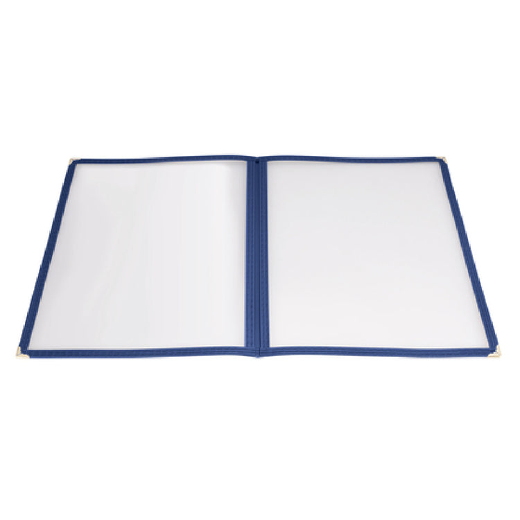 The Winco PMCD-9B Menu Cover is a highly functional and aesthetically pleasing accessory designed to enhance the presentation of menus in various dining establishments. With dimensions of 9-3/8" x 12-1/8", this double-fold menu cover is specifically tailored to hold standard 8-1/2" x 11" paper, making it an ideal choice for restaurants, cafes, and bistros aiming to showcase their menu offerings with style. The elegant blue finish, combined with double-stitched edging, not only ensures durability but also adds a touch of sophistication to any table setting. Crafted from high-quality plastic, the Winco PMCD-9B is lightweight and easy to handle, providing a practical solution for establishments that frequently update their menu selections. This menu cover caters to the operational needs of both large upscale venues and small casual eateries, offering a reliable and visually appealing way to present menus while protecting them from spills and wear. Its robust construction and thoughtful design elements make the Winco PMCD-9B an indispensable tool for the hospitality industry, enhancing both the dining experience and the restaurant's brand presentation through meticulous attention to detail and quality craftsmanship.