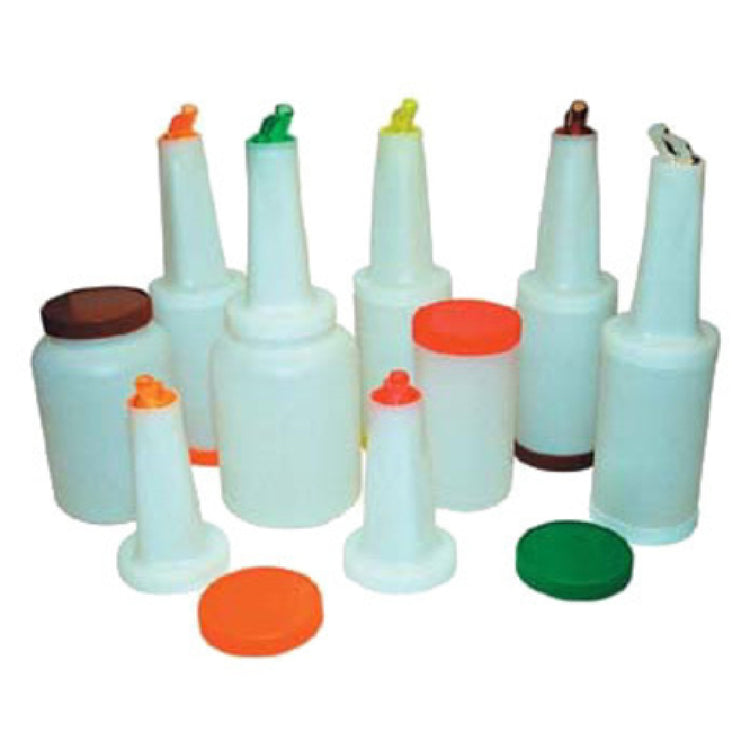 The Winco PPB-1MX Liquor & Juice Multi Pour 1 Qt. Complete Set is a versatile tool designed for efficient beverage dispensing, catering to both liquor and juice applications. This complete set includes an assortment of colored spouts and lids, with two pieces of each color, providing a flexible solution for distinguishing between different liquids or flavors. The product's one-quart capacity makes it suitable for both high-volume commercial settings and smaller-scale operations, offering scalability across various business needs. As an NSF-certified product, it adheres to strict public health and safety standards, assuring users of its quality and reliability in professional environments. Its comprehensive design, with multiple colored components, enhances its utility by simplifying inventory management and reducing the risk of cross-contamination. The Winco PPB-1MX is a valuable asset for bars, restaurants, and catering services looking to streamline their beverage service operations. The inclusion of multiple spouts and lids also supports easy customization and adaptability in dynamic service scenarios, making it a practical choice for diverse market segments within the beverage industry.