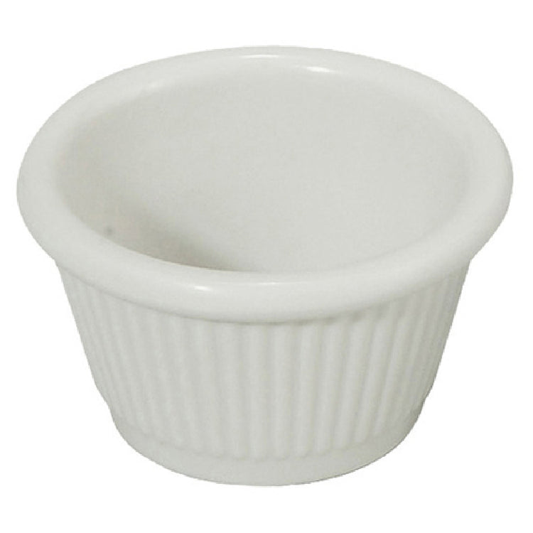 The Winco RFM-1W Ramekin 1-1/2 Oz. Fluted is a meticulously designed piece suitable for various dining and culinary purposes, offering a sleek and practical option for serving condiments, sauces, and small portions. This ramekin is crafted from melamine, a durable material known for being break-resistant, ensuring longevity and reliability in busy commercial or home settings. The fluted design adds a touch of elegance, making it a versatile choice for different dining atmospheres. It is heat resistant up to 212°F/100°C, providing versatility for serving both hot and cold items safely. Additionally, the Winco RFM-1W Ramekin is dishwasher safe, allowing for easy cleaning and maintenance, which is essential in fast-paced environments such as restaurants and catering services. Its white color complements a wide range of table settings, enhancing the presentation of its contents. With NSF certification, this ramekin adheres to strict public health and safety standards, making it a trustworthy option for professional food service applications. Whether used in a high-volume restaurant or a home kitchen, the Winco RFM-1W Ramekin delivers a combination of style, durability, and practicality, making it a valuable tool in any culinary setting.