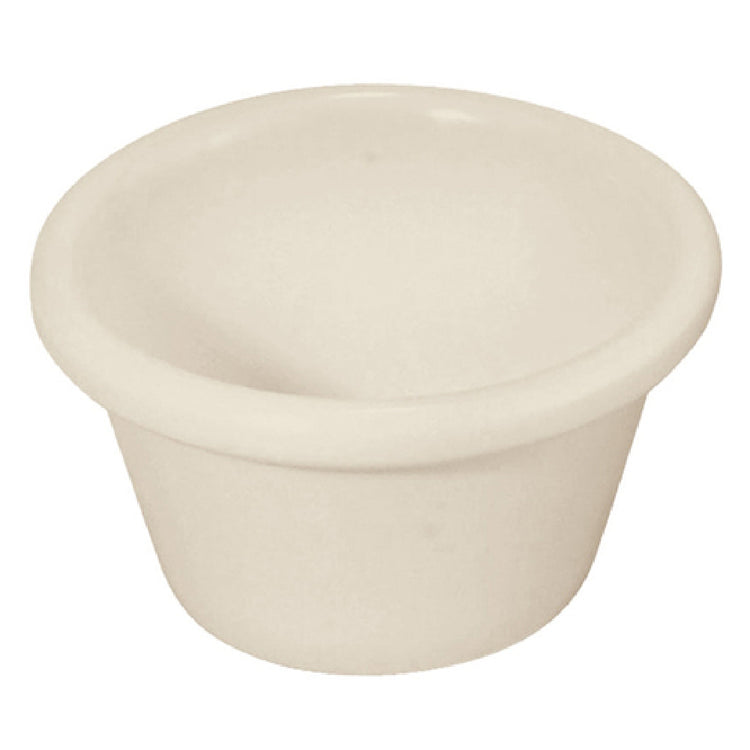 The Winco RP-6B Ramekin 6 Oz. Plain is a quintessential kitchen staple designed for versatility across various culinary applications. This 6-ounce ramekin is crafted from durable melamine, ensuring it is break-resistant and ideal for frequent use in busy food service environments. Its heat resistance up to 212°F (100°C) makes it suitable for a range of temperature-controlled dishes, maintaining integrity under high heat conditions. Additionally, the Winco RP-6B is dishwasher safe, facilitating easy cleaning and maintenance, which is essential for food service operations that prioritize efficiency and hygiene. The ramekin's bone color lends a classic and neutral aesthetic, seamlessly complementing any table setting, from casual dining to elegant presentations. Certified by the NSF, this ramekin meets rigorous public health and safety standards, emphasizing its reliability and quality for professional use. The Winco RP-6B Ramekin is an excellent choice for restaurants, catering services, and home kitchens, offering a combination of durability, practicality, and timeless design.