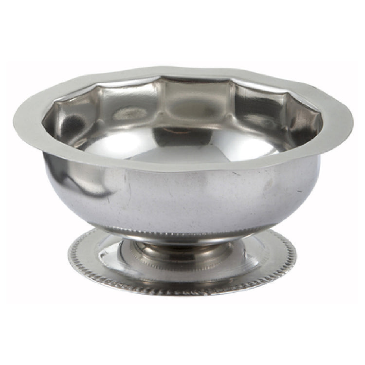 The Winco SD-5 Sherbet Dish 5 Oz. Footed is a versatile and elegant piece of serveware, crafted to elevate the presentation of desserts while offering practicality and durability. With a capacity of 5 ounces, this dish is perfect for serving a variety of sweet treats such as sherbet, ice cream, or custards, making it an ideal choice for restaurants, catering services, and home use. The footed design not only adds a touch of sophistication to the table setting but also provides stability, ensuring that the dish remains upright during use. Constructed from high-quality stainless steel, the Winco SD-5 Sherbet Dish is resistant to corrosion and staining, promising a long-lasting shine and ease of maintenance. This material choice also ensures that the dish is lightweight yet robust, suitable for frequent handling in busy food service environments. The sleek, polished finish complements any table decor, offering a timeless appeal. The Winco SD-5 Sherbet Dish's blend of functionality and aesthetic appeal makes it a valuable addition to any setting, whether for casual dining or formal events, adapting to the diverse needs of different market segments within the hospitality industry.