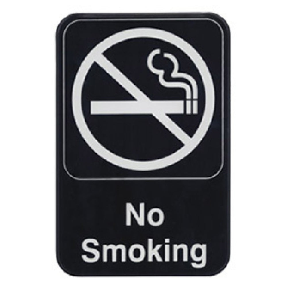 The Winco SGN-601 Information Sign with Symbol 6" x 9"H is a prominently designed sign essential for various settings requiring clear communication of no-smoking policies. Measuring 6 inches by 9 inches in height, this information sign is distinctively crafted for visibility and precision. It features a bold "No Smoking" message, which is prominently displayed with a white imprint on a contrasting black background, enhancing readability from a distance. The inclusion of a universally recognized no-smoking symbol augments its effectiveness, making it suitable for diverse environments such as restaurants, offices, hospitals, and other public spaces where smoking is prohibited. This sign is crafted to meet industry standards, ensuring it effectively communicates critical information while contributing to maintaining a smoke-free environment. Its size and color combination make it adaptable for indoor use in almost any setting, providing a clear directive without occupying excessive space. The Winco SGN-601 Information Sign is an ideal choice for establishments seeking to promote health and safety regulations clearly and effectively, ensuring compliance and enhancing the comfort and well-being of patrons, employees, and visitors alike.