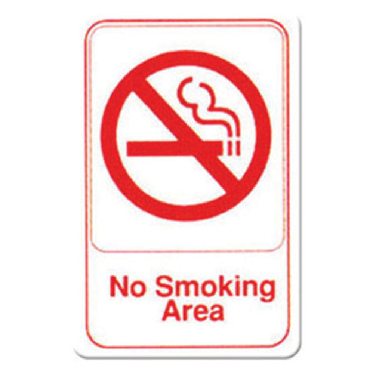 The Winco SGN-684W Information Sign With Symbol is a crucial signage solution designed to communicate important area-specific instructions effectively. Measuring 6 inches by 9 inches in height, this sign is perfectly dimensioned to ensure visibility without occupying excessive space, catering to various industrial and commercial environments. The sign prominently features a “No Smoking Area” notification with a red imprint on a contrasting white background, enhancing readability and catching attention immediately. The inclusion of a clear, universally recognized symbol further reinforces the message, making it easily understandable for diverse audiences, including non-English speakers or those with reading difficulties, thereby promoting inclusivity and compliance with safety regulations. This sign is a vital addition to areas where smoking is prohibited, ensuring adherence to health and safety standards across different market segments such as hospitality, healthcare, corporate offices, and educational institutions. Its durable construction ensures it withstands various environmental conditions, making it suitable for both indoor and outdoor applications. By providing a clear and authoritative visual cue, the Winco SGN-684W Information Sign supports organizations in maintaining a safe and smoke-free environment, thereby enhancing overall health and safety measures within their premises.