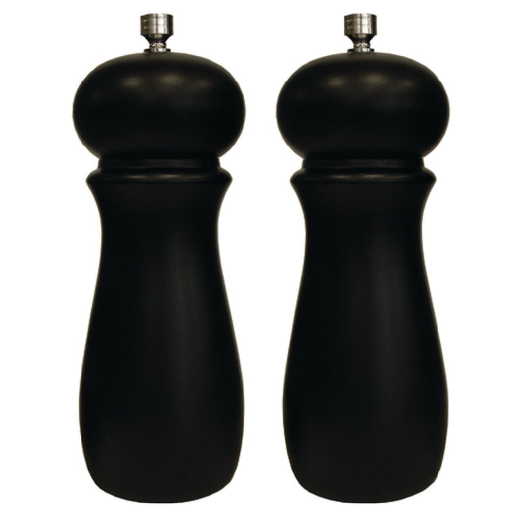 The Winco SP-624 Pepper Mills is a versatile kitchen tool designed for precision and style, featuring dimensions of 2-1/4 inches in diameter and 6 inches in height. This set includes two knobs, offering flexibility and ease of use for a variety of culinary applications. Crafted from durable rubberwood, the pepper mills boast a sophisticated black matte finish, making them a stylish addition to any kitchen or dining setup. The set comes with two pieces, emphasizing its practicality for both personal and professional settings. The compact size and elegant design make it suitable for different market segments, from home cooks to professional chefs looking for reliable and aesthetically pleasing kitchen tools. The rubberwood construction ensures durability and a lightweight feel, while the black matte finish provides a sleek and modern appearance. These pepper mills are ideal for those who value both functionality and design in their kitchen equipment, offering an efficient and stylish solution for seasoning food. With the inclusion of two knobs, the Winco SP-624 Pepper Mills cater to various seasoning needs, enhancing the versatility and appeal of this product in the culinary industry.