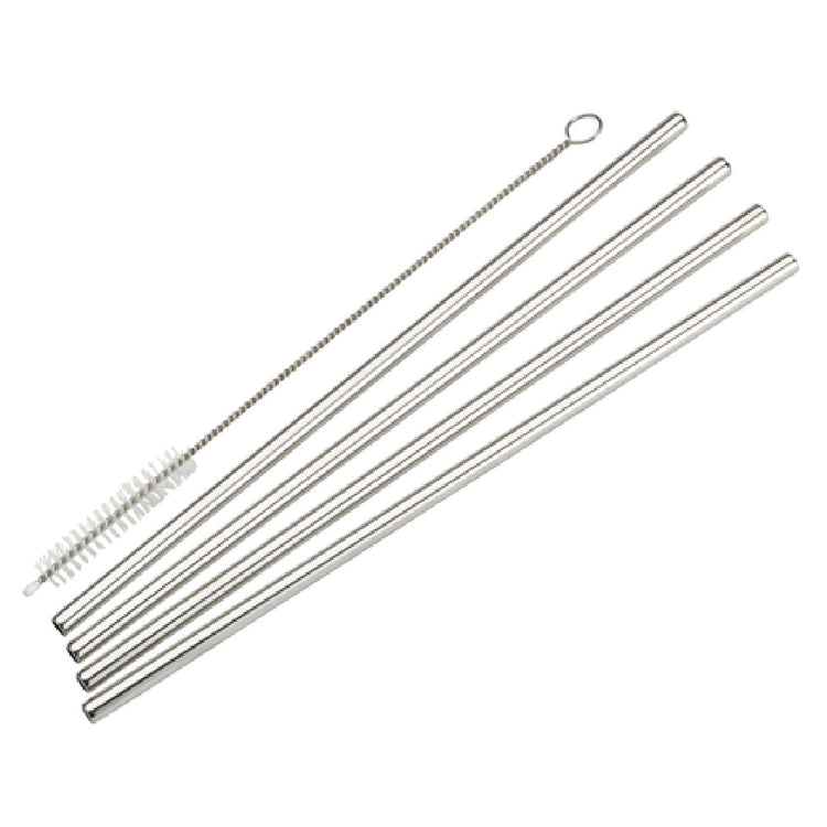 The Winco SSTW-8S Drinking Straw Set is a meticulously crafted 5-piece collection designed for both home and professional use, providing an eco-friendly alternative to disposable straws. Each straw in the set measures 1/4" in diameter and 8-1/2" in height, making them suited for various beverage types, from smoothies to cocktails. The set includes four straight straws, complemented by a dedicated cleaning brush, ensuring ease of maintenance and hygiene. These straws are made from 18/8 stainless steel, known for its durability and resistance to rust and corrosion, providing a sustainable choice for environmentally conscious consumers. The stainless steel material is also dishwasher safe, offering convenience and ensuring that the straws remain in pristine condition with minimal effort. The Winco SSTW-8S Drinking Straw Set caters to diverse market segments, from eco-conscious individuals seeking to reduce plastic waste to hospitality establishments looking for durable, reusable straw options. Its sustainable design and practical features make it a valuable addition to any setting, combining functionality with environmental responsibility. Whether for personal use or in a commercial context, this straw set delivers a reliable and stylish drinking solution, reflecting a commitment to quality and sustainability.