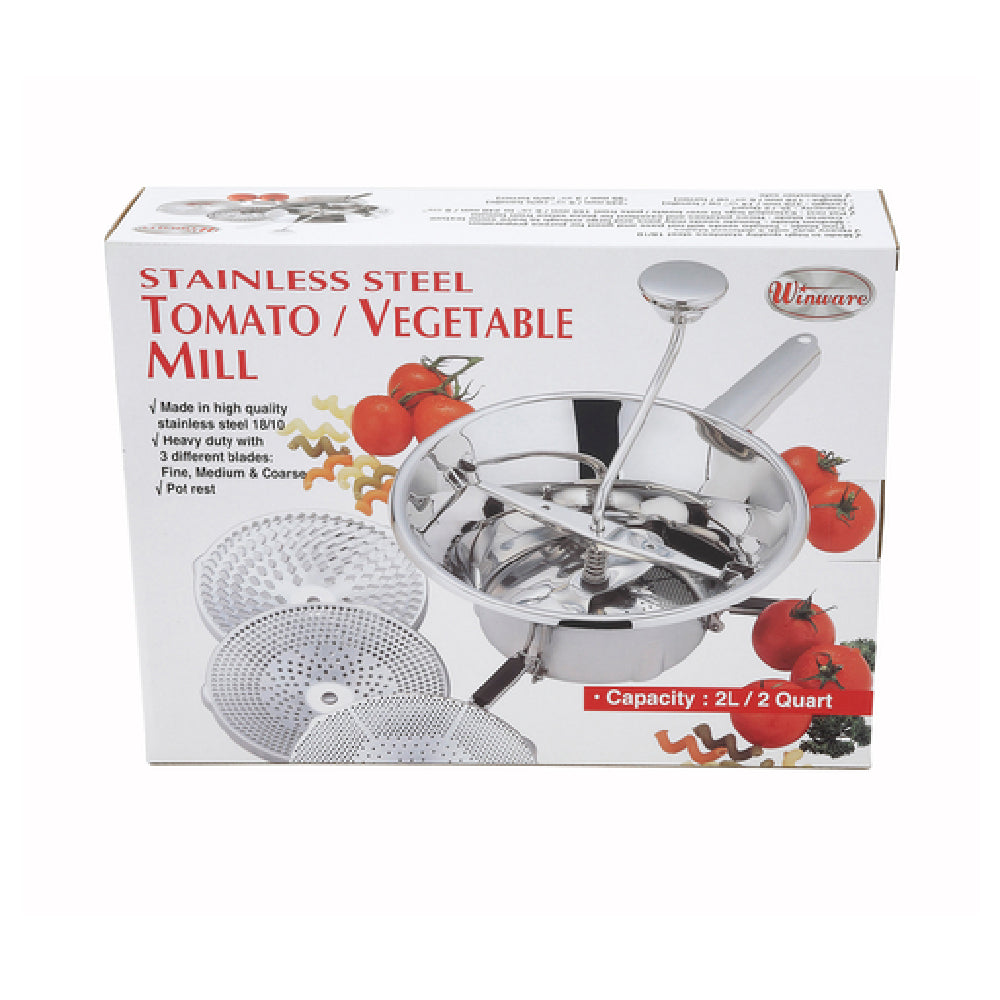 The Winco SVM-9 Food Mill 2 Qt. Medium is a versatile kitchen tool designed with precision and efficiency in mind, featuring a 9-inch diameter that makes it suitable for a range of culinary applications. This round food mill is equipped with three interchangeable cutting plates, allowing for medium processing of foods with variable textures and consistencies. Constructed from durable stainless steel, the Winco SVM-9 is built to withstand the demands of professional kitchens while ensuring longevity and resistance to corrosion. With a 2-quart capacity, it provides ample volume for processing medium-sized batches of food, making it an ideal choice for both small-scale operations and larger establishments seeking quality and reliability. The stainless steel material not only contributes to its robustness but also simplifies the cleaning process, promoting hygiene in food preparation. The interchangeable cutting plates enhance its functionality, offering varied textures for different culinary needs, from purées to sauces. This food mill is a valuable addition to any kitchen, providing efficiency and adaptability, meeting the diverse processing requirements of chefs and food service professionals across the industry.