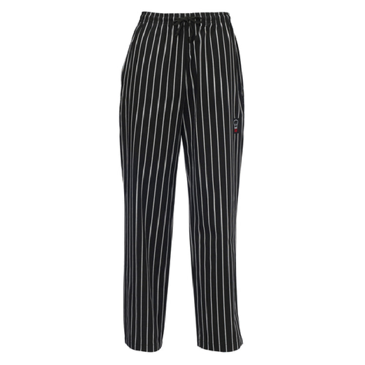 Winco UNF-3CS Newbury Chef Pants - Relaxed Fit Elastic Waistband With Drawstring are crafted to meet the demanding needs of a culinary environment. These pants are designed with a relaxed fit, providing comfort and flexibility for chefs who spend long hours in the kitchen. The elastic waistband coupled with a functional drawstring ensures a secure and adjustable fit, accommodating various body types and ensuring ease of movement. Featuring two convenient side-seam pockets, these pants offer ample storage for small kitchen tools or personal items, enhancing practicality in a fast-paced setting. Constructed from a robust 65/35 poly-cotton blend, these pants balance durability with breathability, making them suitable for extended wear in hot kitchen conditions. The Signature Chef design features a stylish chalk stripe pattern, adding a touch of professionalism and classic style to any kitchen attire. Available in small sizes, these pants are tailored for a precise fit, ensuring comfort without compromising on style. Ideal for culinary professionals across diverse markets, these chef pants combine functionality with a polished appearance, supporting high-performance standards in the hospitality industry.