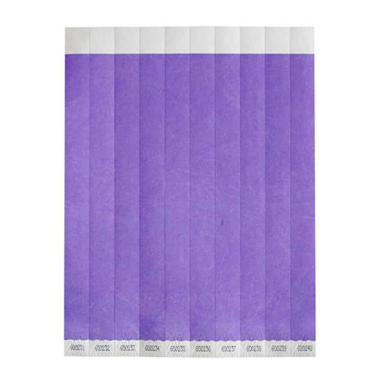 The Bar Maid WB-100PU-S Bar Maid Wristbands 3/4"W X 9.5"L Tyvek (No Tear) are a versatile identification solution suitable for a variety of events and industries, offering exceptional durability and reliability. Each wristband measures 3/4 inches in width and 9.5 inches in length, providing a comfortable fit for most wrist sizes. Made from Tyvek, these wristbands are designed to be tear-resistant, ensuring they remain intact throughout the duration of an event. This product comes in a solid purple color, adding a vibrant and easily recognizable element to event security and organization. With sequential numbering, these wristbands facilitate easy tracking and management of attendees, enhancing security measures. Each pack contains 500 wristbands, and a quantity break is available when purchasing two packs, making it a cost-effective choice for large gatherings. The Bar Maid WB-100PU-S wristbands are an ideal solution for nightclubs, festivals, concerts, and any other events requiring secure and efficient guest management. Their robust construction and simple design cater to the needs of event organizers looking for a reliable wristband option that balances functionality with style.
