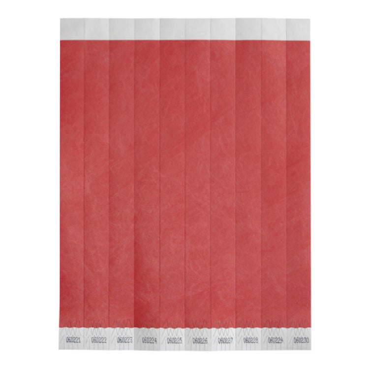 Bar Maid WB-100R-S Bar Maid Wristbands 3/4"W X 9.5"L Tyvek (No Tear) are an essential tool for managing admittance and identification in various environments, from nightclubs to corporate events. Precision-crafted from durable Tyvek material, these wristbands are resistant to tearing, providing a reliable and secure fastening option. Each wristband measures 3/4 inches in width and 9.5 inches in length, offering a comfortable fit for most wrist sizes. A standout feature of these wristbands is their sequential numbering, which enhances security and tracking capabilities, ensuring an organized and streamlined process for event managers. Presented in a striking red solid color, they are highly visible, adding a vibrant touch to any occasion. Each pack contains 500 wristbands, and with a quantity break at two packs, they cater to both small and large-scale usage needs. Whether used in hospitality, entertainment, or corporate sectors, the Bar Maid WB-100R-S wristbands combine functionality with durability, making them a versatile choice for professionals seeking effective crowd management solutions.