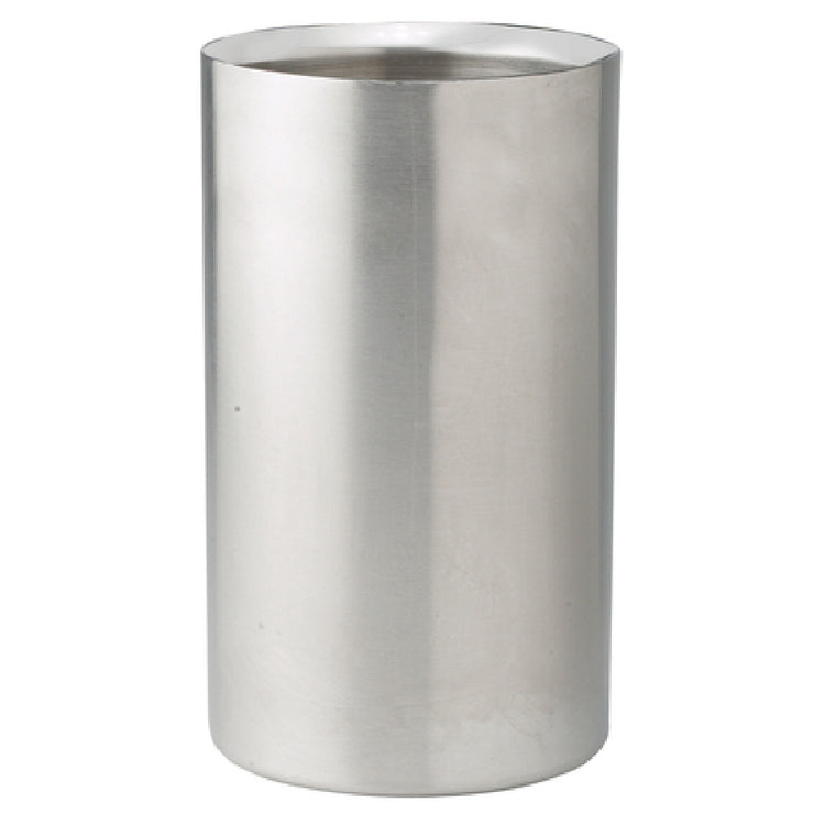 The Winco WC-5 Wine Cooler is a meticulously crafted piece designed to enhance any wine serving experience. With dimensions of 4-1/2 inches in diameter and a height of 7-3/4 inches, this round wine cooler is perfectly suited for various wine bottles, ensuring they remain at the optimal temperature for enjoyment. Its double-wall construction provides superior insulation, maintaining the desired temperature without the need for ice, and showcasing its efficiency in preserving the wine's flavor and aroma. Made from premium stainless steel, the cooler boasts a satin finish, offering both durability and a sleek, modern aesthetic that complements any setting. This combination of functionality and style makes the Winco WC-5 an ideal choice for different market segments, from upscale restaurants and catering services to home entertainment enthusiasts. The stainless steel's resistance to rust and corrosion ensures long-lasting use, even in the most demanding environments. The Winco WC-5 Wine Cooler stands out as a reliable, stylish, and practical addition to any wine-serving collection, providing a touch of elegance while addressing the practical needs of temperature maintenance for wine connoisseurs and industry professionals alike.