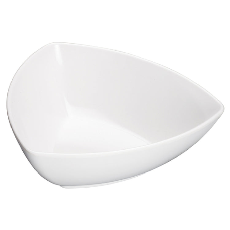 The Winco WDM005-203 Bowl 1-1/4 Qt. 9" is a uniquely designed triangular bowl, offering a distinctive aesthetic while maintaining robust utility for various market segments within the food service industry. With a capacity of 1-1/4 quarts and a 9-inch diameter, this bowl is tailored for diverse dining experiences, from upscale restaurants to casual dining establishments. Constructed from melamine, the Winco WDM005-203 is notably break-resistant, promising durability in high-traffic environments. Its dishwasher safe attribute ensures efficient and easy cleaning, making it ideal for fast-paced kitchen settings. The bowl's white finish, part of the Elista™ and Ardesia™ collections, provides a classic and clean presentation, enhancing the visual appeal of any dish. Its NSF certification reaffirms its compliance with rigorous public health and safety standards, making it a trusted choice for professionals seeking reliable kitchenware. With a packing configuration of 24 each per case, this bowl caters to bulk purchasing needs, offering cost-effectiveness for larger operations. The Winco WDM005-203 Bowl seamlessly combines functionality and style, presenting itself as a versatile addition to any culinary setting, whether for serving appetizers, salads, or side dishes, thus meeting the dynamic demands of the food service industry.