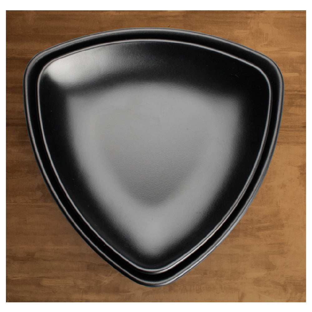 The Winco WDM015-302 Plate 9" Triangular is a distinctive dining accessory, designed to enhance culinary presentations with its unique geometric shape. Crafted from high-quality melamine, this plate promises exceptional durability and break-resistance, making it a reliable choice for both high-volume foodservice environments and home use. Its triangular design adds an element of modernity and sophistication, ideal for trendy restaurants, cafes, and catering services aiming to impress guests with contemporary style. Measuring 9 inches, it provides ample space for a variety of dishes while ensuring easy handling and storage. The plate is colored in Ardesia black, offering a sleek and elegant backdrop that enhances the visual appeal of any plated culinary creation. As part of the Natsuki and Ardesia collection, this plate aligns with a stylish aesthetic that complements diverse table settings. The Winco WDM015-302 is also dishwasher safe, allowing for convenient and efficient cleaning, which is especially valuable in fast-paced kitchen environments. Packed in cases of 24, it caters to bulk purchase requirements, supporting the needs of different market segments within the foodservice industry, from bustling restaurants to large-scale event planners looking for both functionality and form in their tableware solutions.