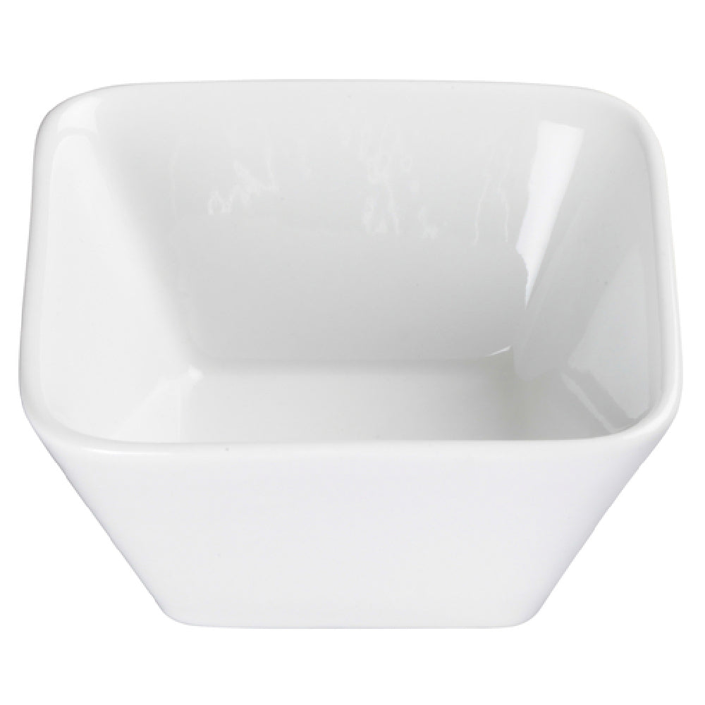 The Winco WDP008-101 Bowl 9 Oz. 4-1/2" is a meticulously crafted piece designed to serve a variety of needs in both commercial and residential settings. Featuring a 9-ounce capacity, this bowl is tailored for serving moderate portions, making it suitable for appetizers, desserts, or side dishes. Its dimensions, with a 4-1/2" size, and square shape, provide a modern aesthetic that complements contemporary table settings, adding a touch of elegance to any dining experience. Made from durable porcelain, the bowl boasts a bright white finish under the Laurets-Ardesia collection, enhancing its visual appeal. The choice of porcelain not only ensures a high-quality, glossy finish but also offers excellent durability and resistance to chipping, making it ideal for high-traffic environments such as restaurants, cafes, and catering events. Furthermore, the bowl is dishwasher safe, offering convenience and ease of maintenance, which is essential for busy kitchens. It is available in cases of 24, making it an efficient choice for bulk purchasing. The Winco WDP008-101 Bowl embodies a blend of design, functionality, and durability, catering to the diverse demands of hospitality professionals while maintaining an understated elegance suited for personal use.
