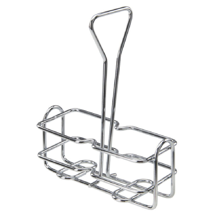 The Winco WH-3 Oil & Vinegar Cruet Rack Square Holds (2) 6 Oz. Containers (G-104) is an elegantly designed essential for culinary establishments aiming to enhance table presentation and functional organization. This cruet rack is crafted with chrome-plated wire, offering both durability and a sleek, modern aesthetic that complements various table settings. Specifically designed to hold two 6-ounce containers, it provides a practical solution for storing and dispensing oil and vinegar, essential condiments in any dining experience. The square shape of the rack ensures stability and efficient use of space, making it a convenient choice for busy restaurant environments or sophisticated home dining setups. Its compact design allows it to fit comfortably on tables without occupying excessive space, facilitating an uncluttered and organized dining area. The Winco WH-3 is ideal for restaurants, cafes, and catering services that emphasize both style and utility. This product stands out for its combination of practicality and visual appeal, making it a versatile addition to any dining operation looking to maintain an elegant yet functional atmosphere.