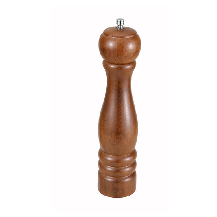 The Winco WPM-10 Pepper Mill 10"H Zinc Alloy Grinder is a premium kitchen tool meticulously crafted for both culinary professionals and home cooking enthusiasts. Standing at a height of 10 inches, this pepper mill is designed with a durable zinc alloy grinder, ensuring long-lasting performance and precise grinding of peppercorns. The combination of zinc alloy and rubberwood construction offers a unique blend of strength and elegance, making it a functional yet attractive addition to any kitchen setting. The robust zinc alloy mechanism is engineered to withstand frequent use, providing consistent results for chefs who demand precision in seasoning. Its ergonomic design caters to ease of use, making it suitable for high-volume commercial kitchens as well as everyday home cooking. The rubberwood body not only adds to the aesthetic appeal but also enhances grip and reduces slippage during use. The Winco WPM-10 is ideal for those seeking a reliable and sturdy pepper mill that can meet the demands of various market segments in the food industry. Its combination of height, material durability, and efficient grinding mechanism makes it a versatile choice for elevating culinary experiences with finely ground pepper.