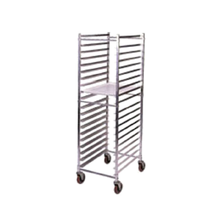 The Winholt ADE1820B-KDA Mobile Pan Rack Full Height 21"W x 26"D x 69"H is a versatile and durable solution for efficient kitchen operations, especially designed for commercial bakeries and foodservice establishments. This pan rack, with its full height dimensions of 21 inches wide, 26 inches deep, and 69 inches high, accommodates up to 20 pans measuring 18 inches by 26 inches, providing ample storage for large-scale baking or cooking tasks. Featuring an end loading design with open sides, it allows for easy access and space efficiency. The pan rack is constructed with all welded angle pan supports, ensuring robust durability and stability even under heavy use. Made from aluminum, this rack offers lightweight maneuverability combined with longevity in demanding environments. It is equipped with 5-inch polyolefin swivel stem casters, which facilitate smooth and effortless mobility across various floor types. The rack's 3-inch on-center spacing between shelves is optimal for ensuring organized storage and maintaining airflow around pans. Shipped KD (knocked down), it is easy to assemble upon arrival. NSF certification highlights its adherence to strict public health and safety standards, making it a reliable choice for any professional kitchen looking to enhance its operational efficiency.