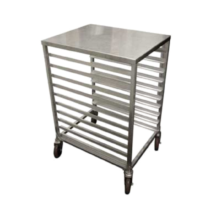 The Winholt AL-1810H-SSTOP Pan Rack Mobile Half Size is an expertly designed piece of equipment tailored for the efficient organization and mobility of baking essentials in professional kitchens. This mobile pan rack has been meticulously crafted to accommodate a range of up to ten 18" x 26" pans, optimizing storage space with its 3" spacing between each slot. Its half-size design underscores its versatility, fitting seamlessly into diverse kitchen layouts. The rack supports end loading, a feature that enhances accessibility and ease of use in fast-paced environments. Constructed with a robust aluminum frame, this product ensures durability and longevity, standing up to the rigorous demands of commercial kitchens. Complementing its sturdy construction, the rack is equipped with a removable stainless steel top, adding a layer of functionality and adaptability for various food service applications. This thoughtful design makes it an invaluable asset across different market segments within the food industry, from bustling bakeries to high-volume catering operations, where efficient space utilization and mobility are paramount. The Winholt AL-1810H-SSTOP Pan Rack Mobile Half Size is not just a storage solution, but a reliable partner in achieving superior organization and operational efficiency.
